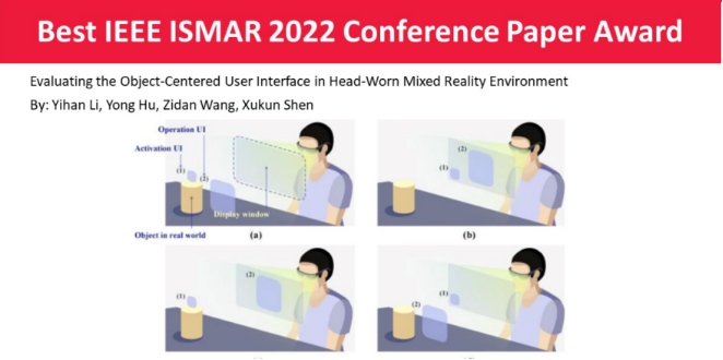 20221017日至21日,混合现实与增强现实领域的顶级国际学术会议IEEE ISMAR 2022The 21st IEEE International Symposium on Mixed and Augmented Reality在新加坡线上线下同时举行。北航9428cn太阳集团古天乐2020级硕士生李一含第一作者)、王子丹沈旭昆教授与胡勇教授共同指导下完成的论文Evaluating the Object-Centered User Interface in Head-Worn Mixed Reality Environment被选为本届最佳会议论文奖。